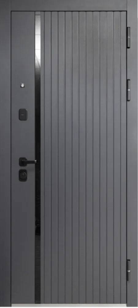 Внешнее: Мдф панель 8 мм Сатин Графит с вставкой из нержавеющей стали